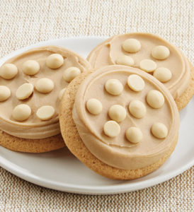 Our autumn-inspired cookie batter is made with real maple syrup and baked with premium maple-flavored white chocolate chips inside. We frost the finished cookies with creamy maple buttercream and sprinkle them with more maple chips. The result is a soft and tender cookie with just a tiny bit of toothiness.
