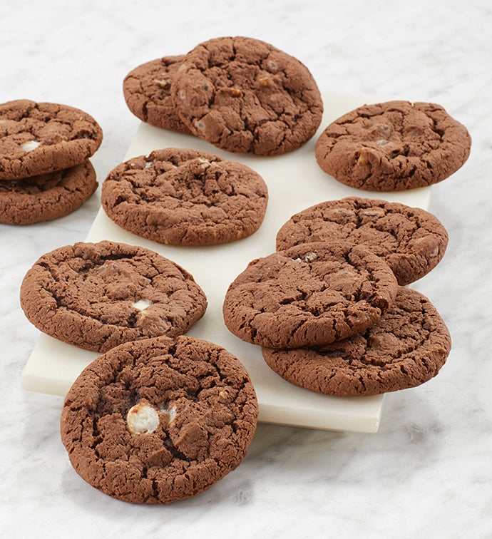 Cheryl’s, too, has designed a spin-off Rocky Road chocolate cookie featuring thick chocolate chips, gooey, bite-size marshmallows, and crisp roasted pecans. Each rich gourmet treat is well baked on the outside and soft in the middle, as well as individually wrapped and sealed for maximum freshness (and perfect preservation, should you tuck a few away in the freezer).